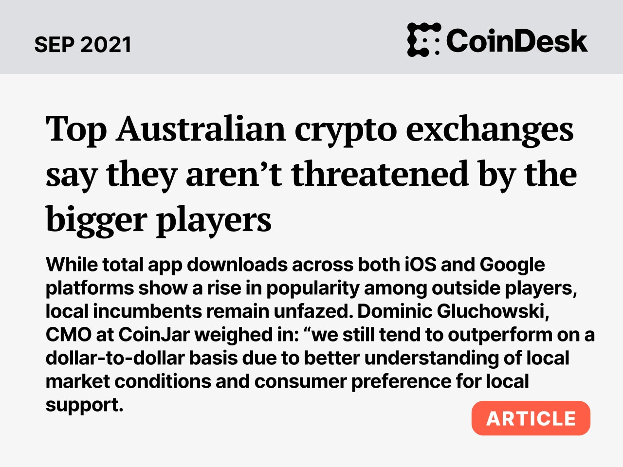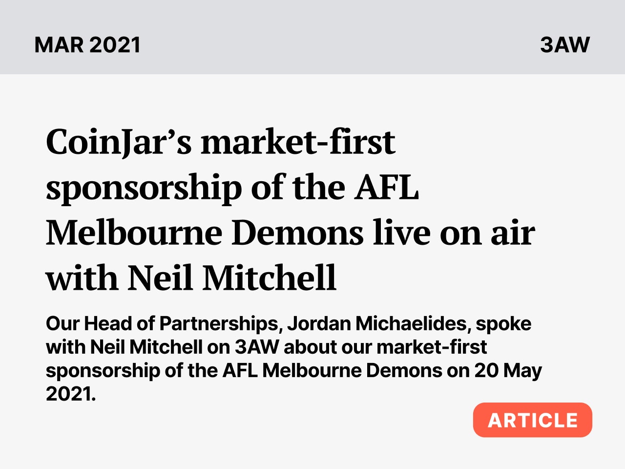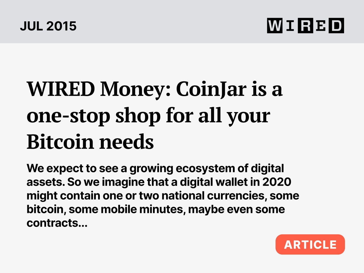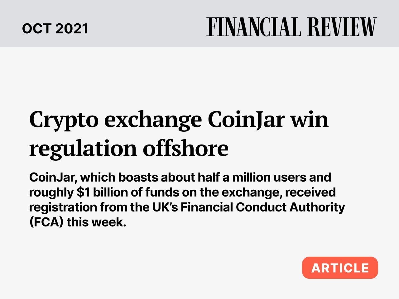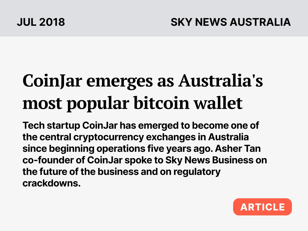 CoinJar’s digital currency exchange services are operated by CoinJar Australia Pty Ltd ACN 648 570 807, a registered digital currency exchange provider with AUSTRAC.