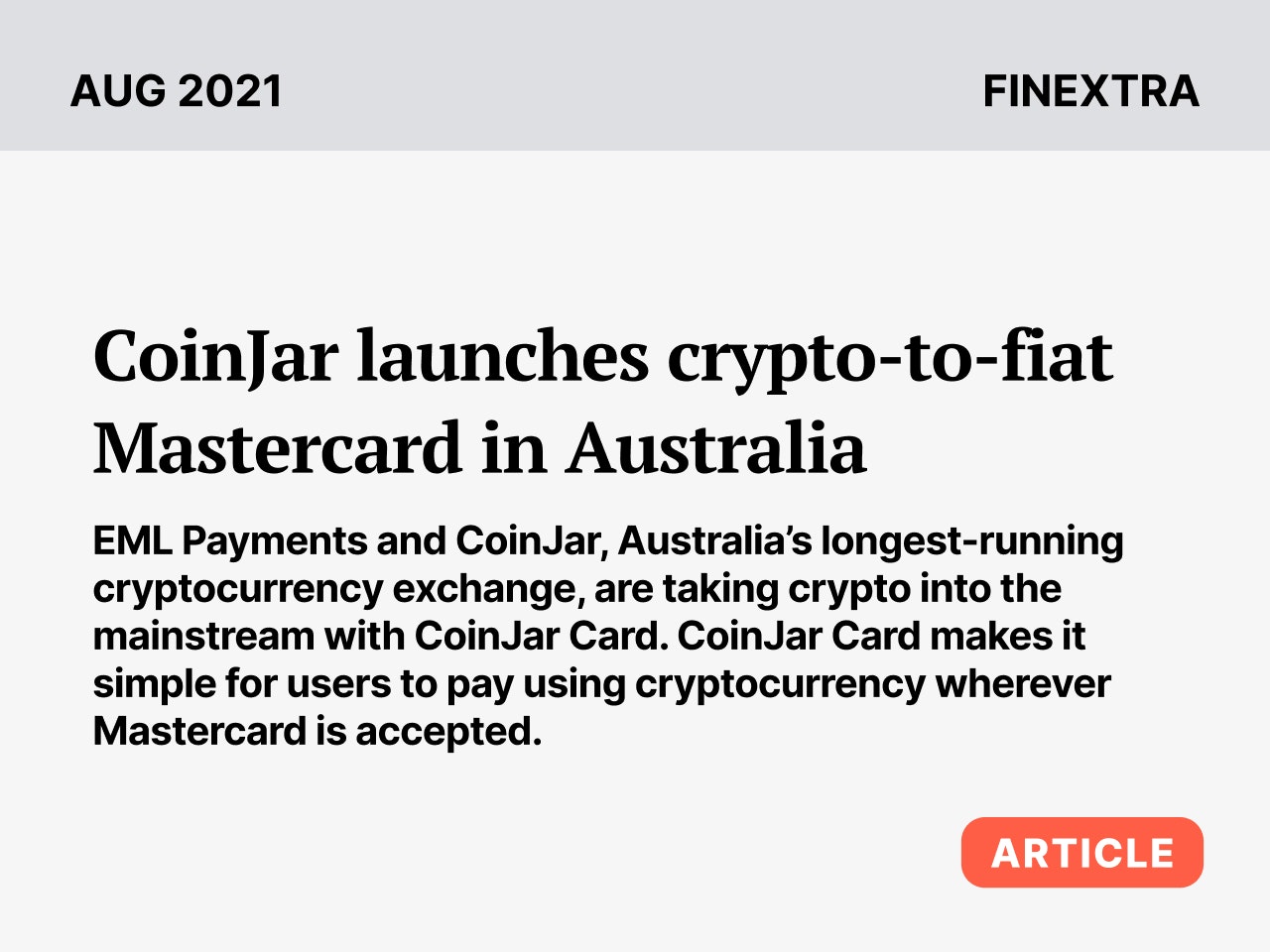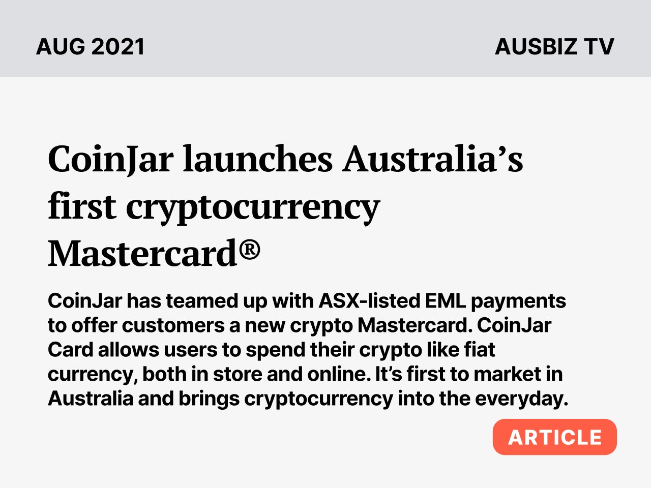 CoinJar Card is a prepaid Mastercard issued by EML Payment Solutions Limited ABN 30 131 436 532 AFSL 404131 pursuant to license by Mastercard. CoinJar Australia Pty Ltd is an authorised representative of EML Payment Solutions Limited (AR No 1290193). We recommend you consider the Product Disclosure Statement and Target Market Determination before making any decision to acquire the product. Mastercard and the circles design are registered trademarks of Mastercard International Incorporated.
