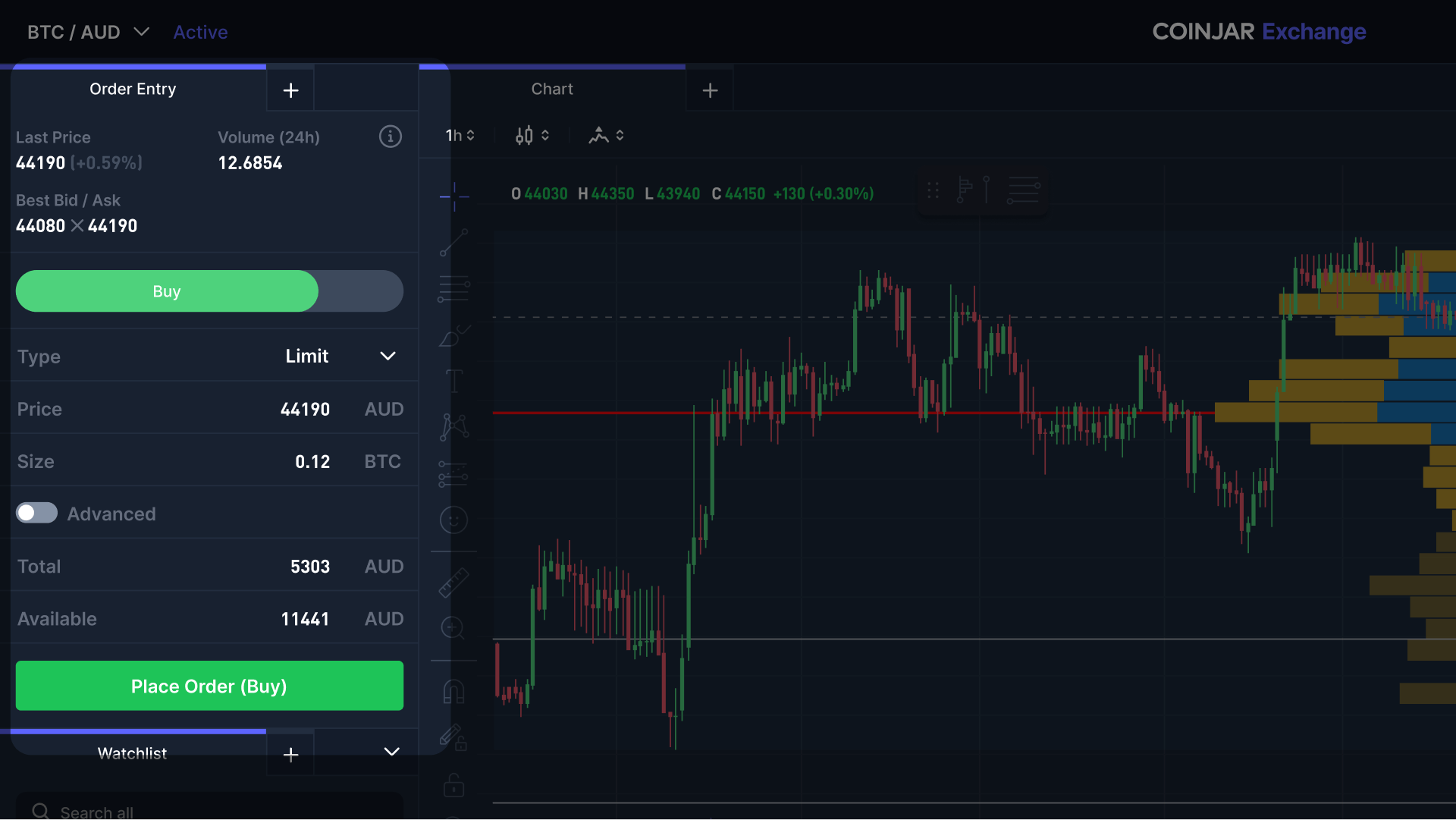 On CoinJar Exchange, you're trading on an open market with what is called a “live order book”. You can set the exact price and amount you want to buy or sell — and your trade will only go through if someone matches your price.